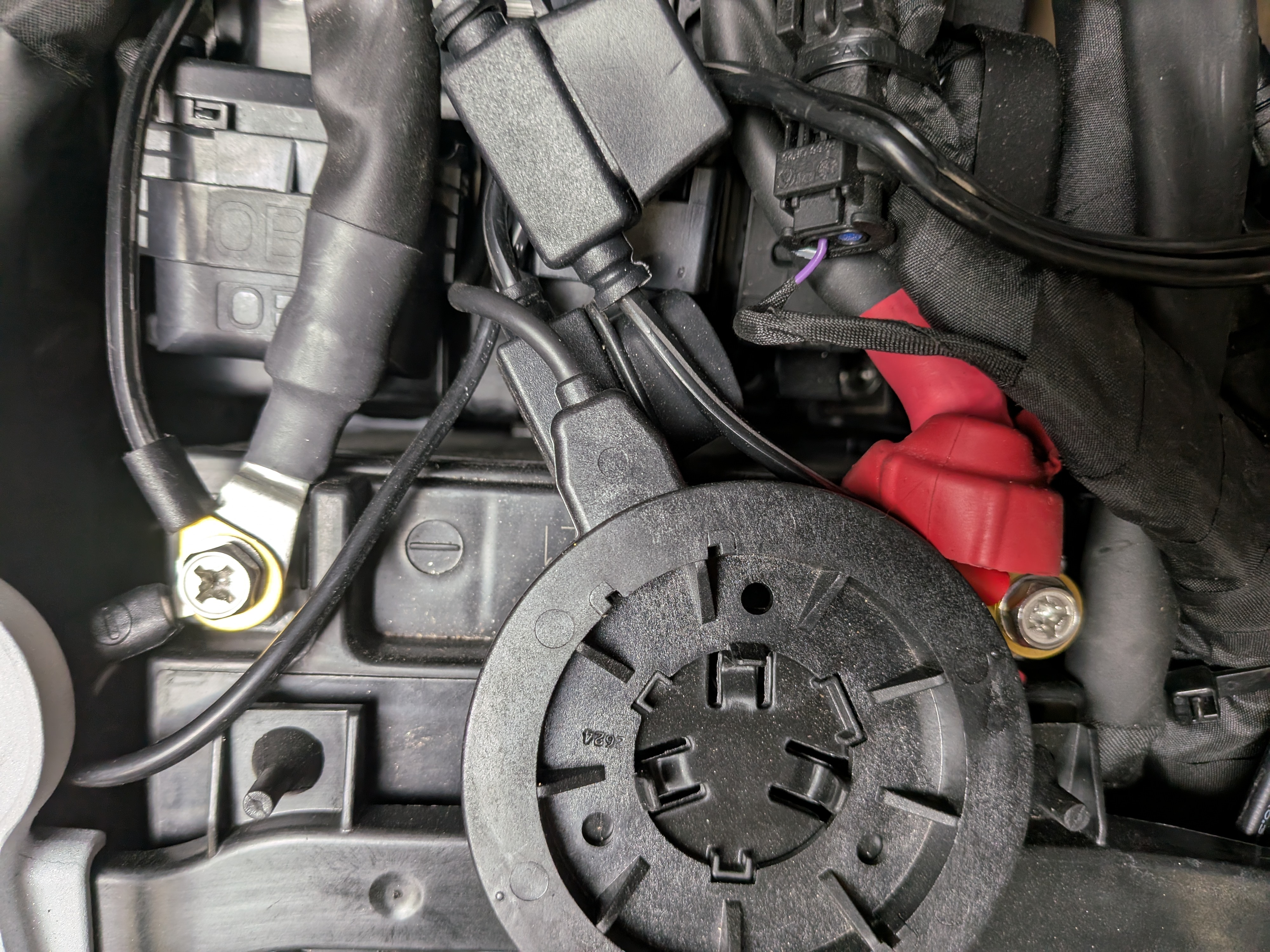 Unscrew the battery terminals. Use the attached ring terminals to attach to the battery. Red on the postive and black on the negative terminal.