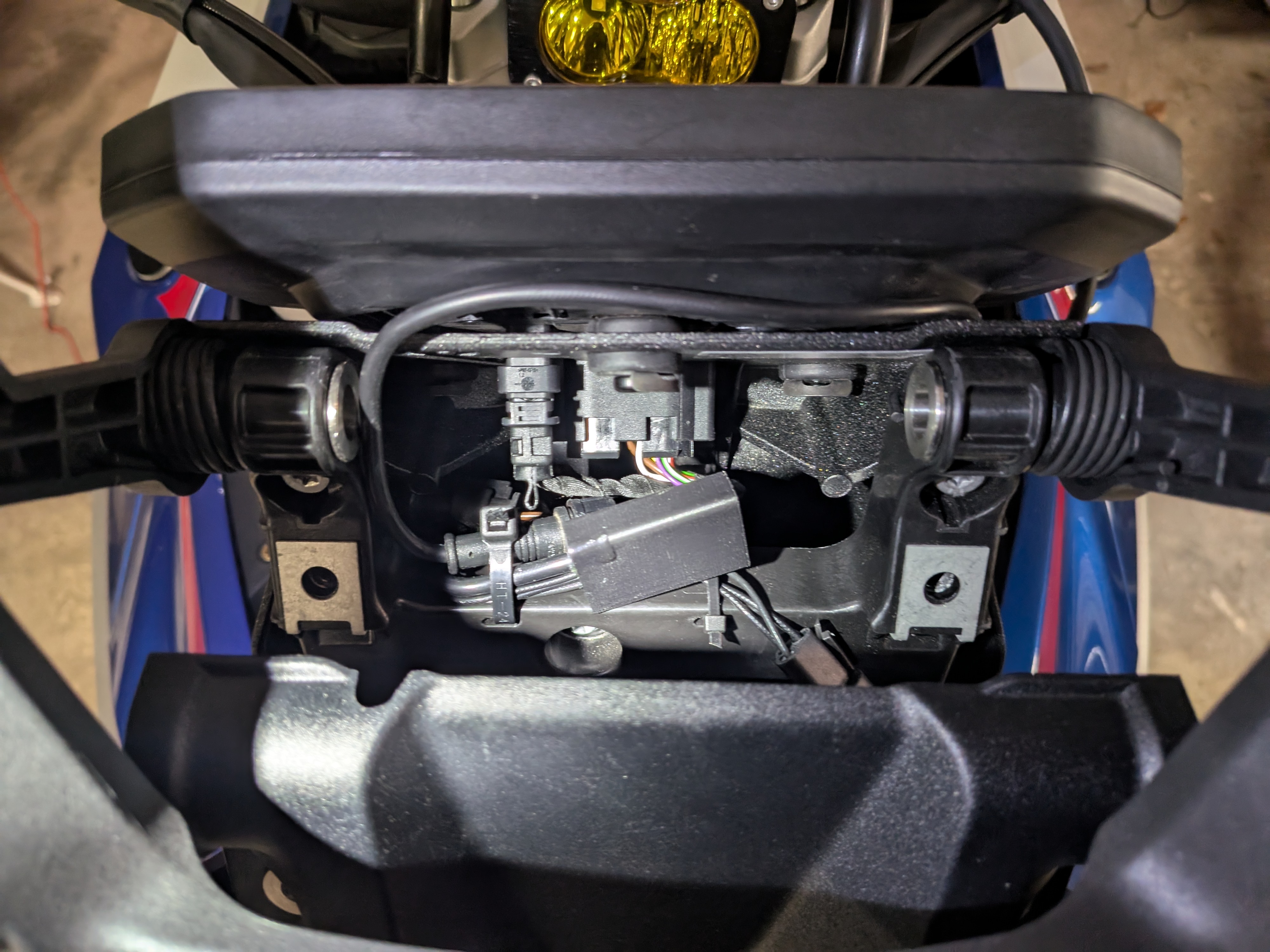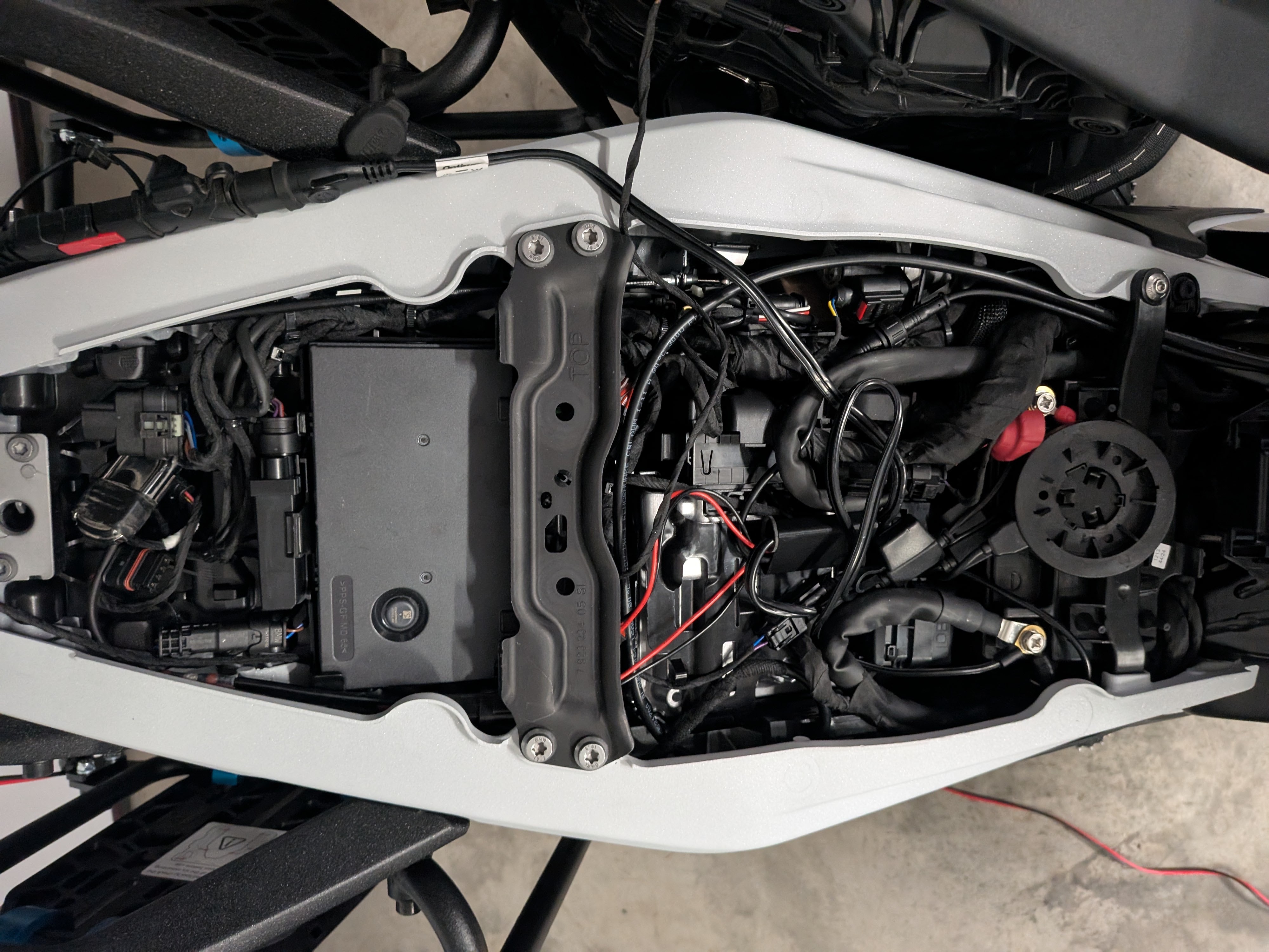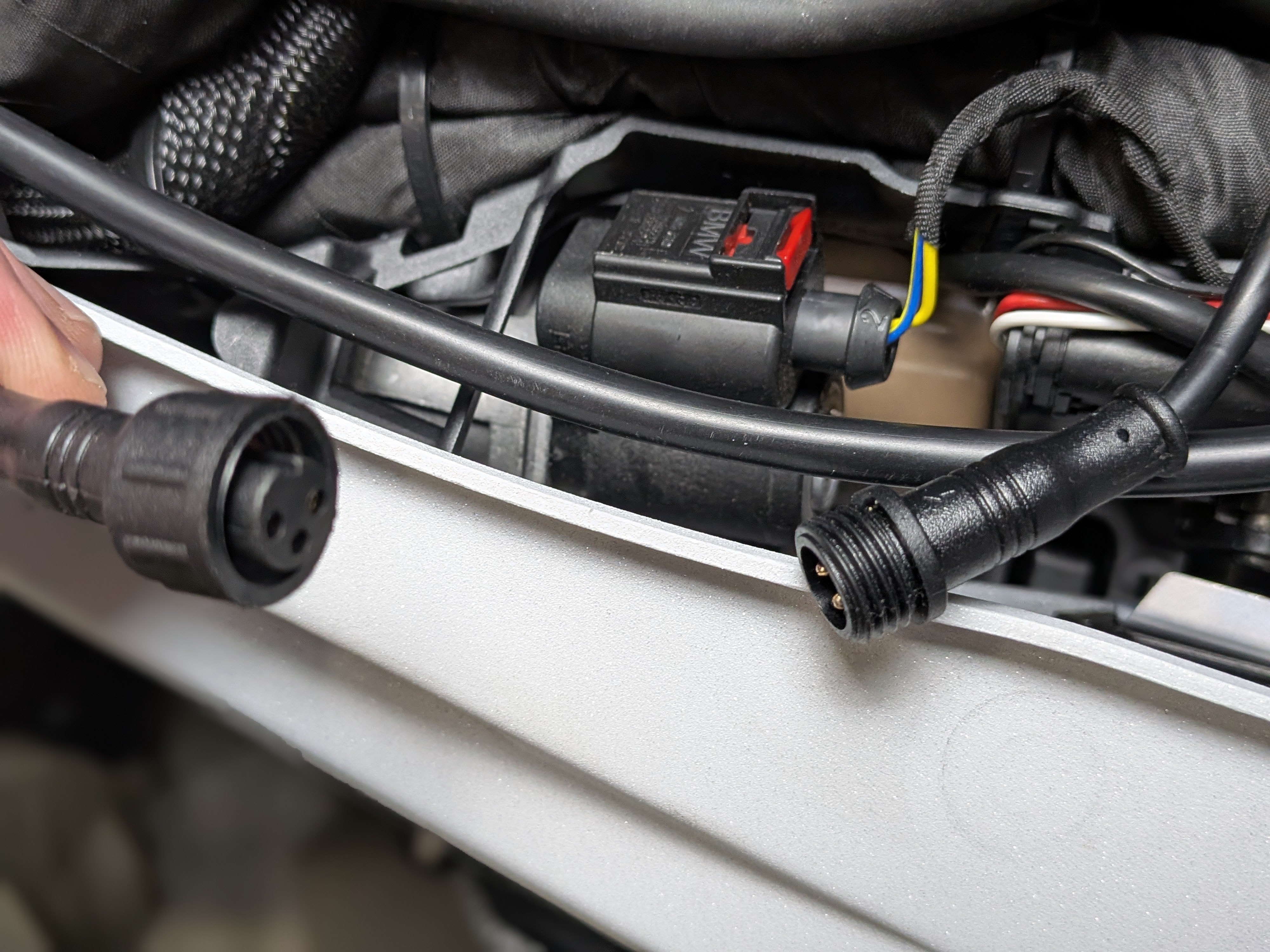 Turn the motorcycle ignition on. Launch and connect the WunderLINQ app to your WunderLINQ and test by switching focus to your installed accessory and turning in on and off. After you have tested, stash and zip tie the PowerLINQ and cables out of the way.